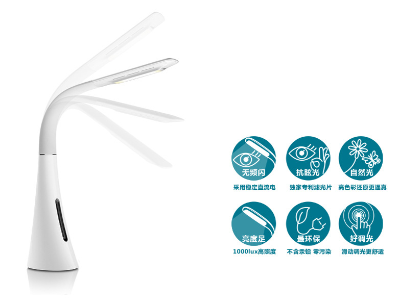 易視界產(chǎn)品親子智能護眼臺燈全新LED面光源,顏色逼真更護眼,光照效果更集中明亮;觸摸指示背景燈,優(yōu)雅靈動操控體驗;高靈敏滑動觸摸按鍵,滑動調(diào)光;七級LED燈光亮度調(diào)節(jié),適應(yīng)各種照明要求;產(chǎn)品收納方便,軟管燈臂設(shè)計,更容易調(diào)整到需要的優(yōu)質(zhì)角度;光源不含鎢、汞等有毒金屬,低碳環(huán)保。榮獲歐盟CE認(rèn)證!歐盟RoSH認(rèn)證!及國家技術(shù)專利!